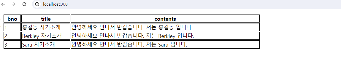 1,홍길동 자기소개,안녕하세요 만나서 반갑습니다. 저는 홍길동 입니다.