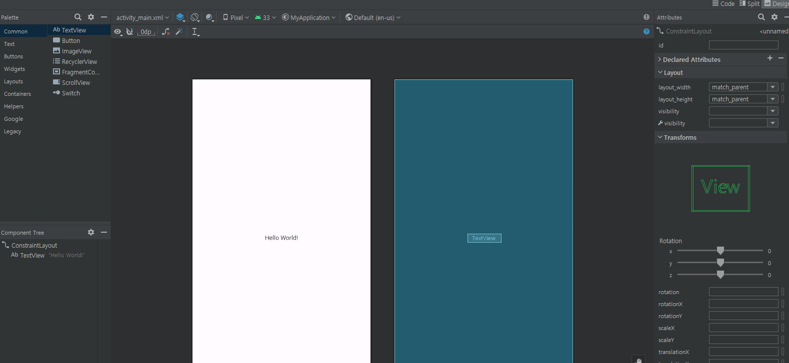 1. Android Studio에서 첫 프로젝트 생성 후 디자인 해보기