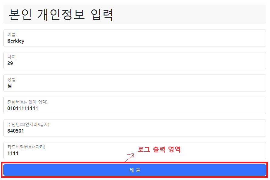 - 시작은 고객 정보(나이, 성별, 전화번호, 주민번호 앞자리 6자리, 카드 비밀번호 4자리) 화면 보여주고 메뉴 선택
