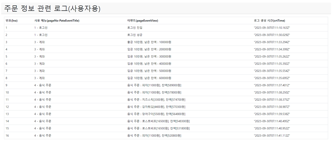 (4) 주문 정보 관련 로그(사용자용)