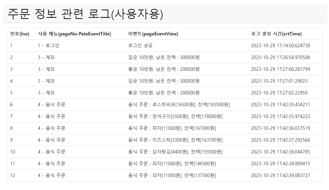 6. 음식 주문 이벤트 결과